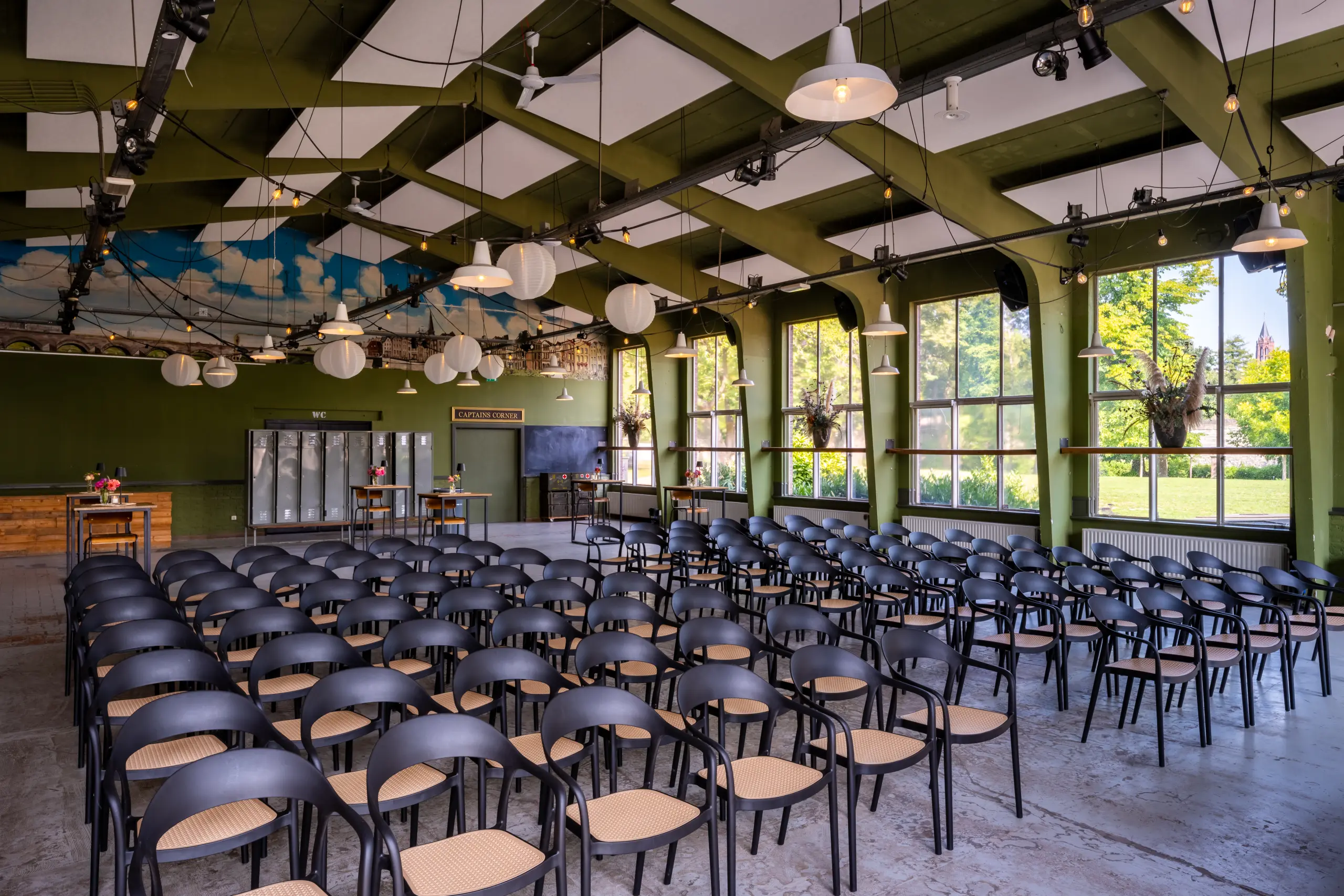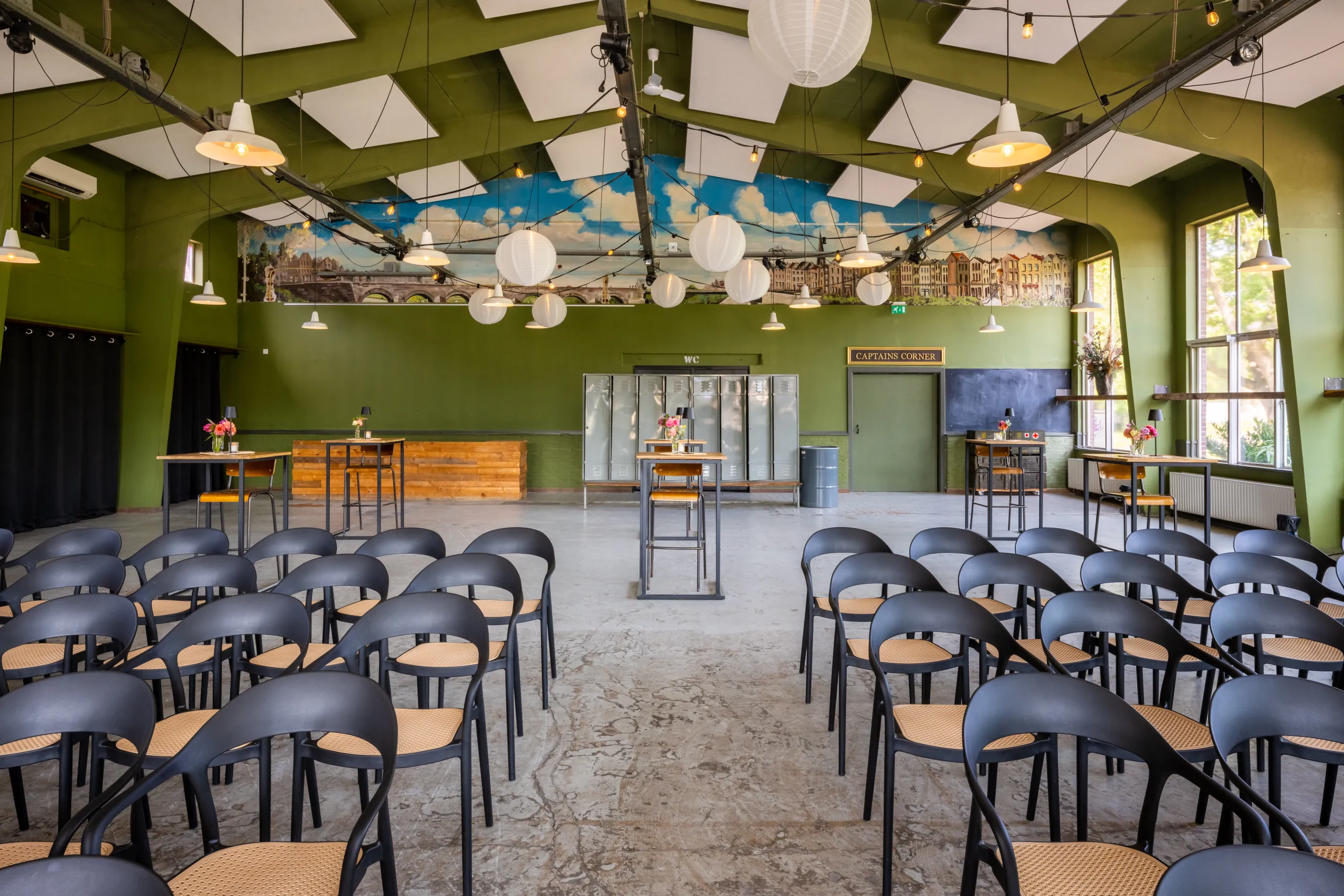 Een industriële ruimte in het centrum van Maastricht, in de voormalige Tapijn Kazerne. De unieke combinatie voor een event geheel naar uw wens.